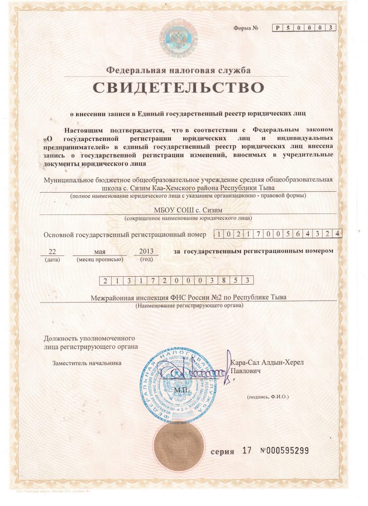 Устав МБОУ СОШ с.Сизим