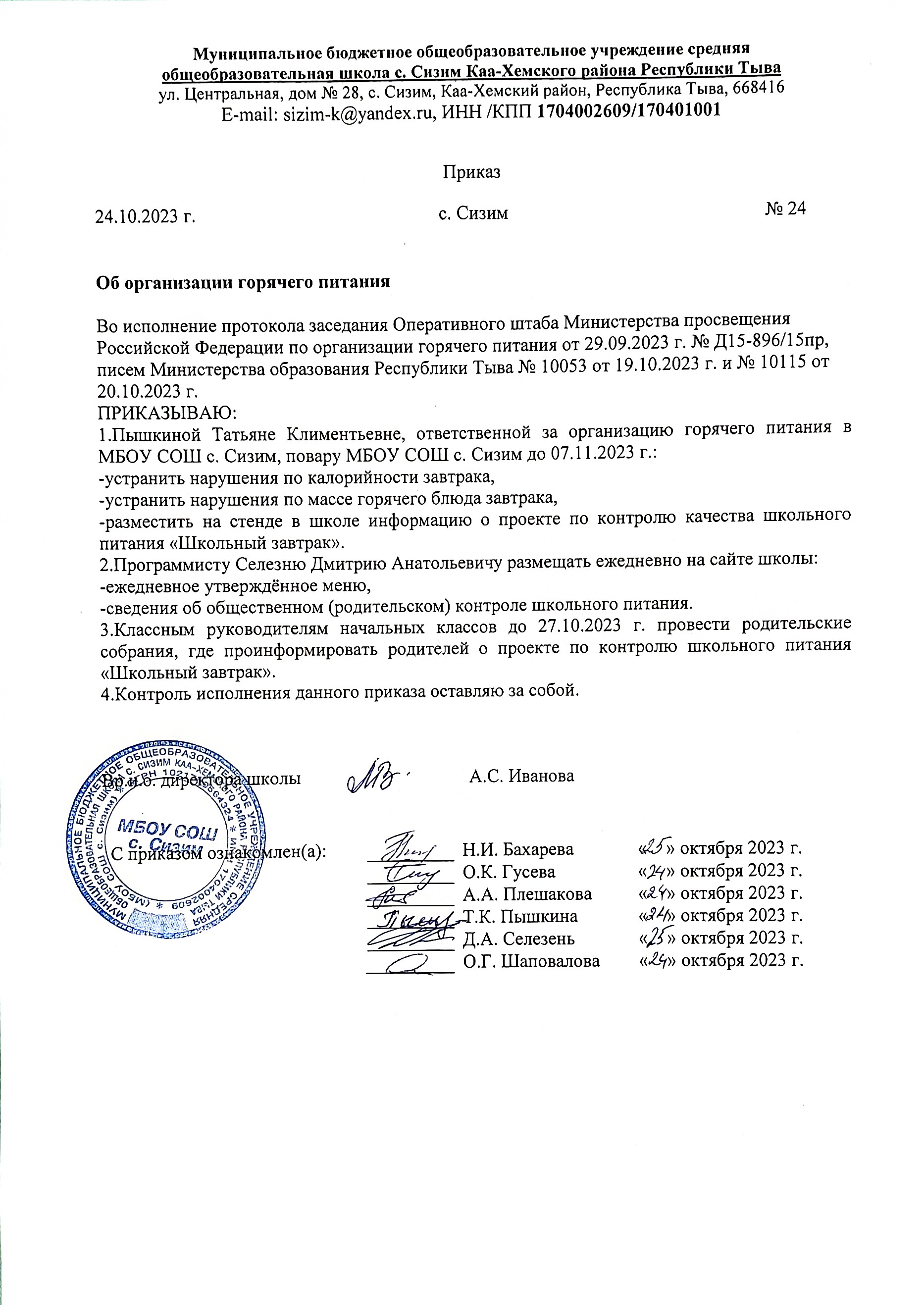 НПА школьные План работы комиссии по контролю за организацией питания школьников Скачать Приказ об организация горячего питания Скачать График работы школьной столовой для 1-4классовСкачать Положение об утверждении Положения общественной комиссииСкачать Приказ об усилении контроля организации горячего питания обучающихся Скачать Приказ об утверждении программы по совершенствованию организации питания учащихся Скачать Приказ об организация горячего питания школьников Скачать Приказ о проведение информационно — разъяснительной работы с родителями (законными представителями) обучающихся по вопросам проведения родительского контроля Скачать Положение об утверждении Положения о родительском контролеСкачать Положение об утверждении Положения о бракеражной комиссии Скачать